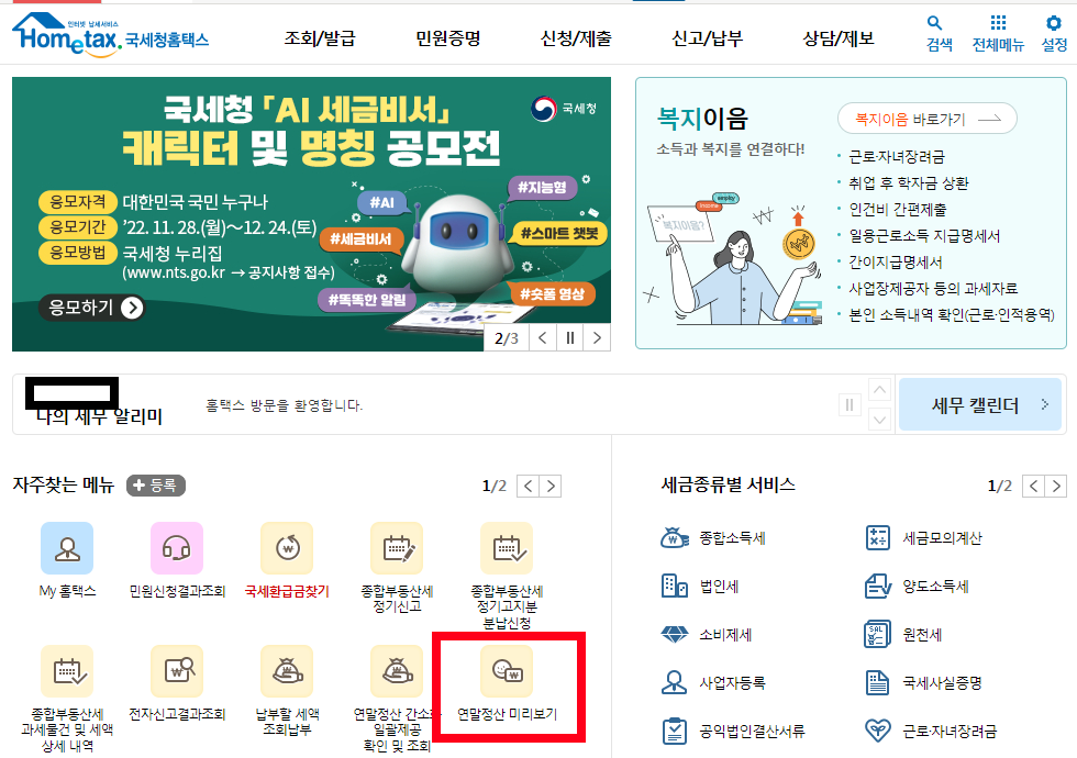 2022년 연말정산 미리보기가 오픈되었습니다.